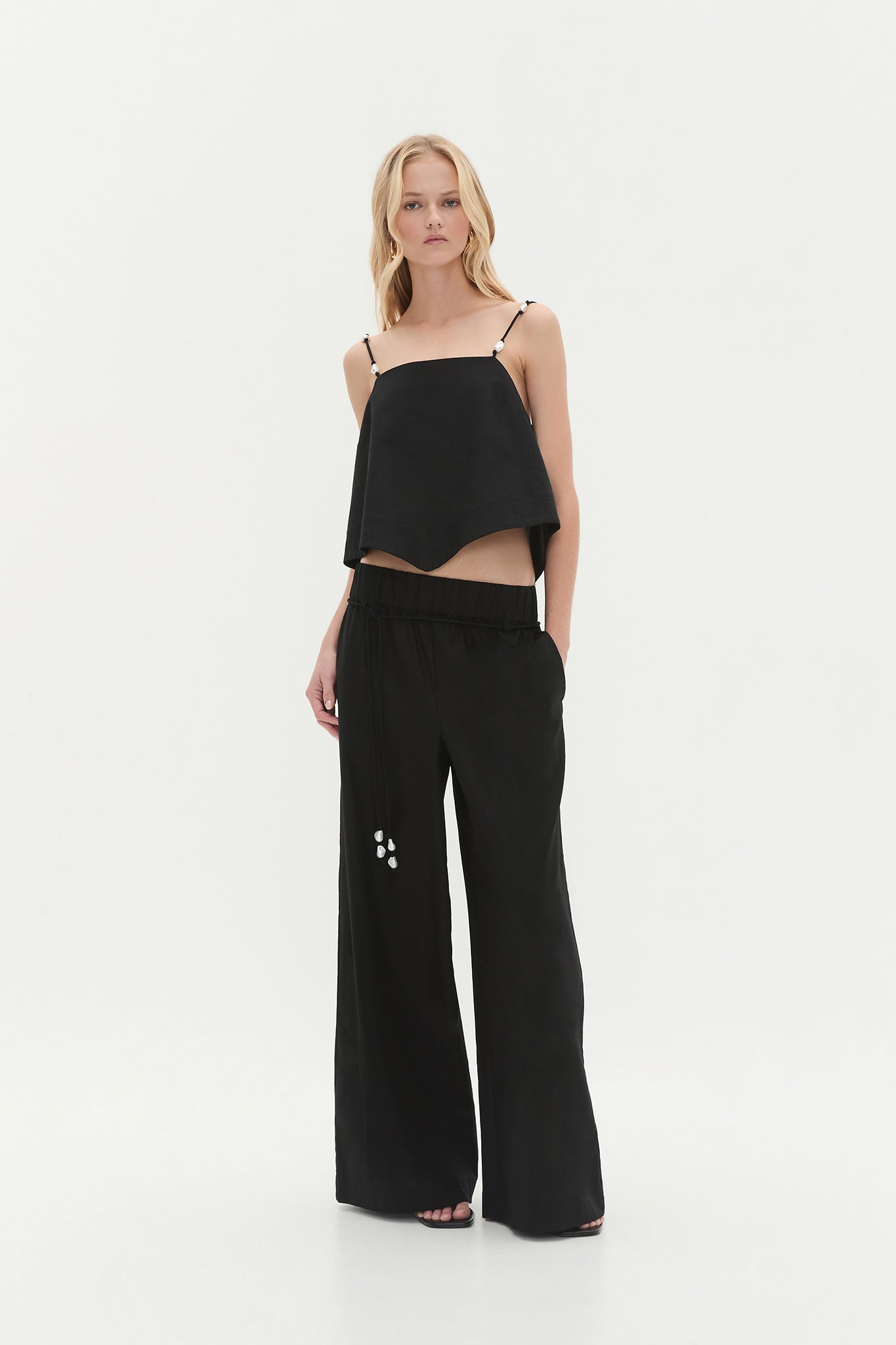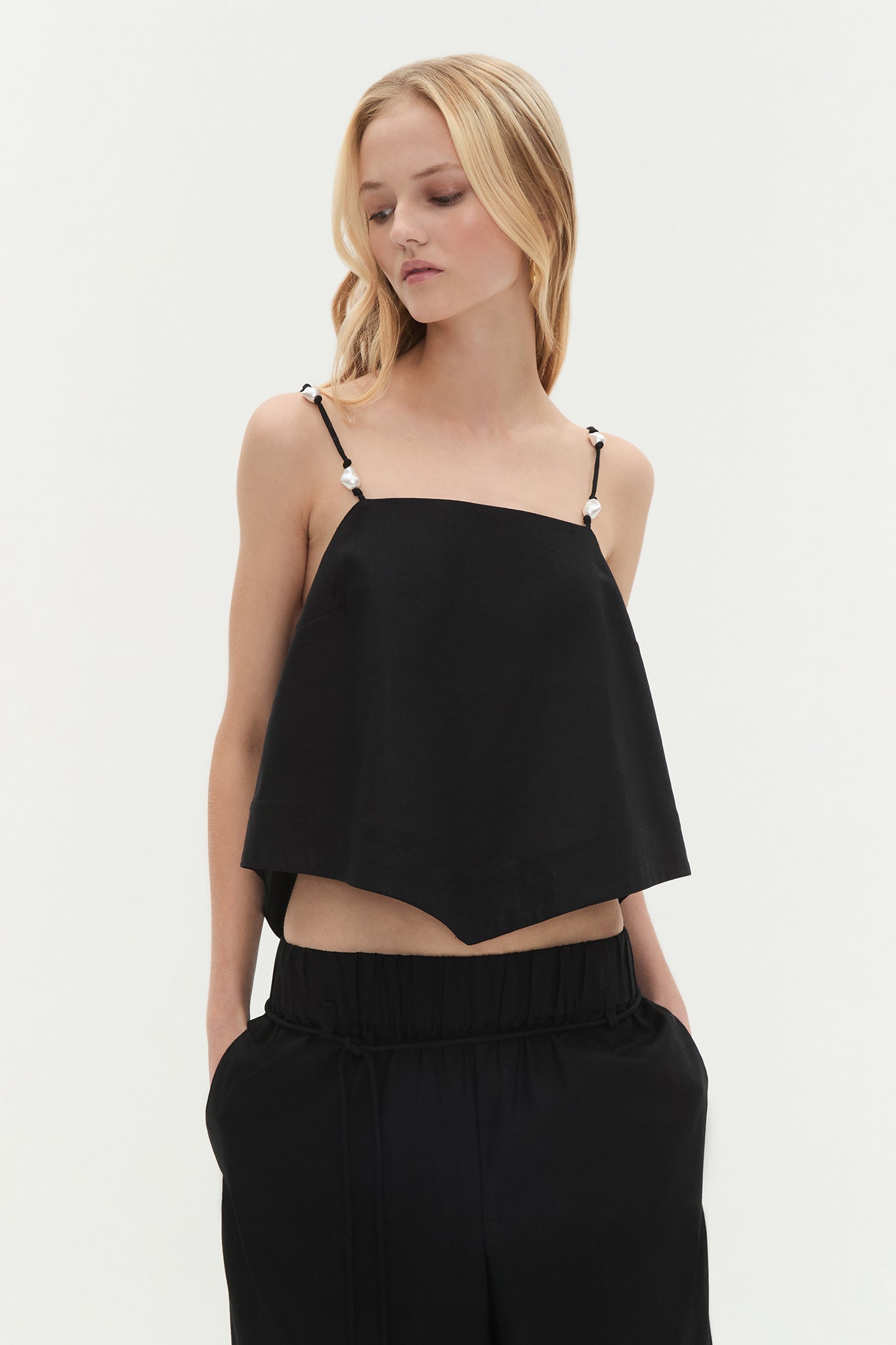 - Pearl bead spaghetti straps