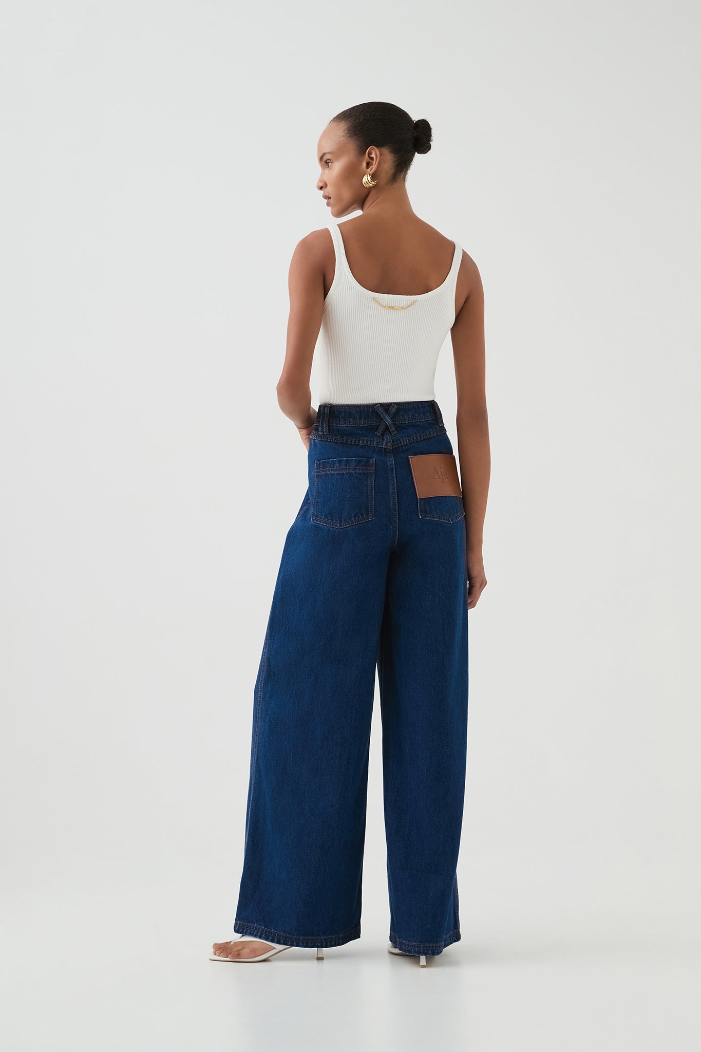 - Large logo patch at back pocket