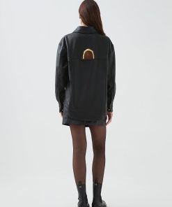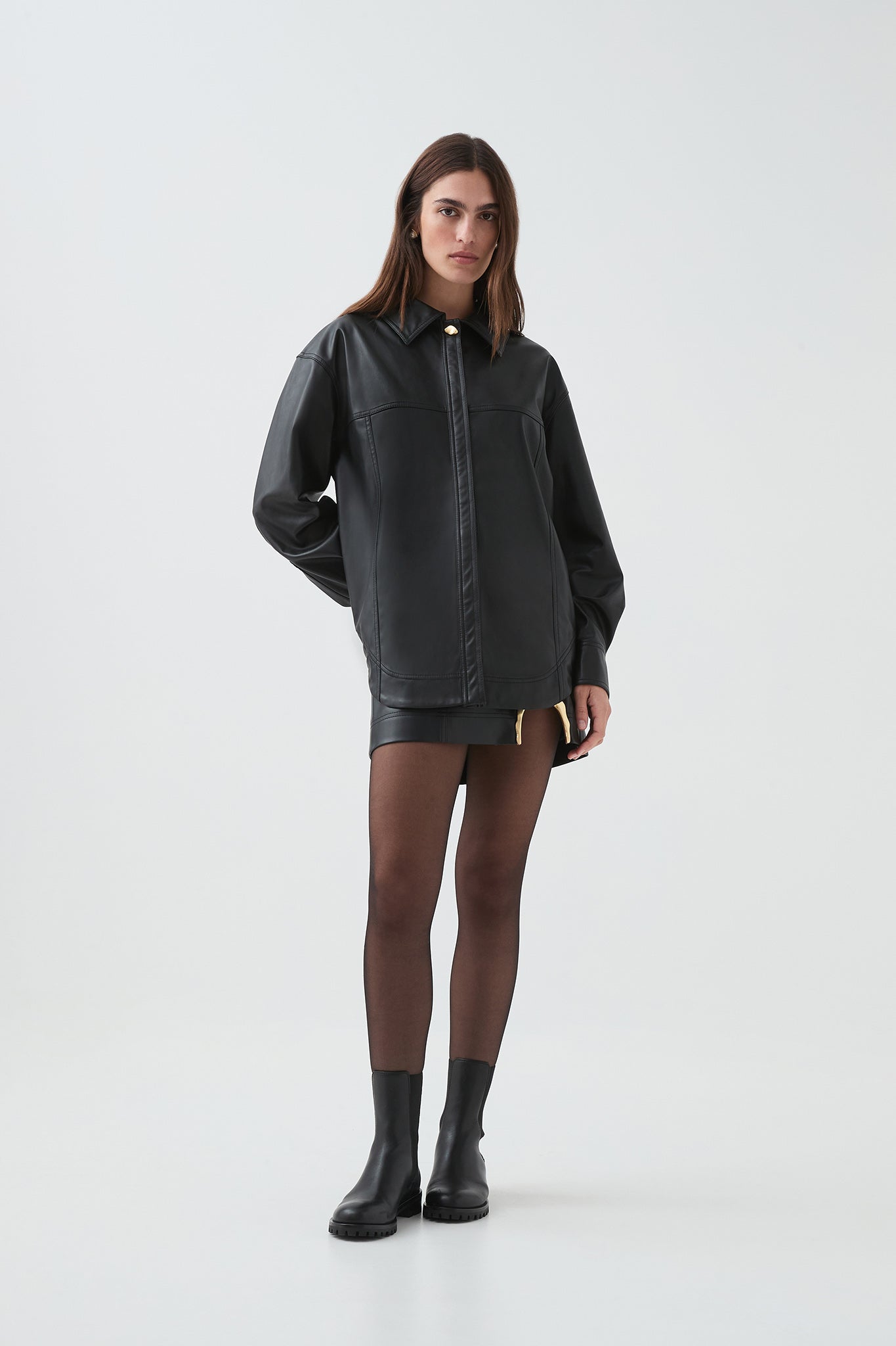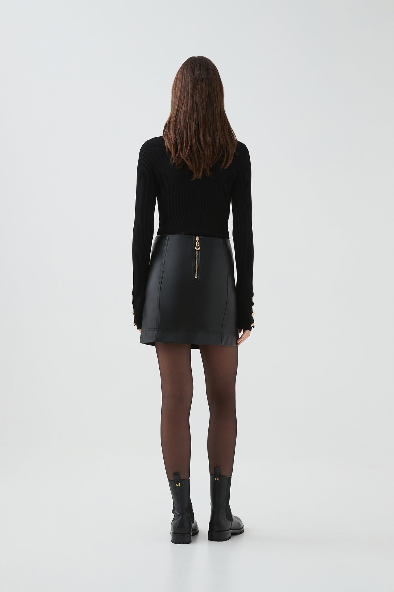 - Back zip with gold sculptural puller