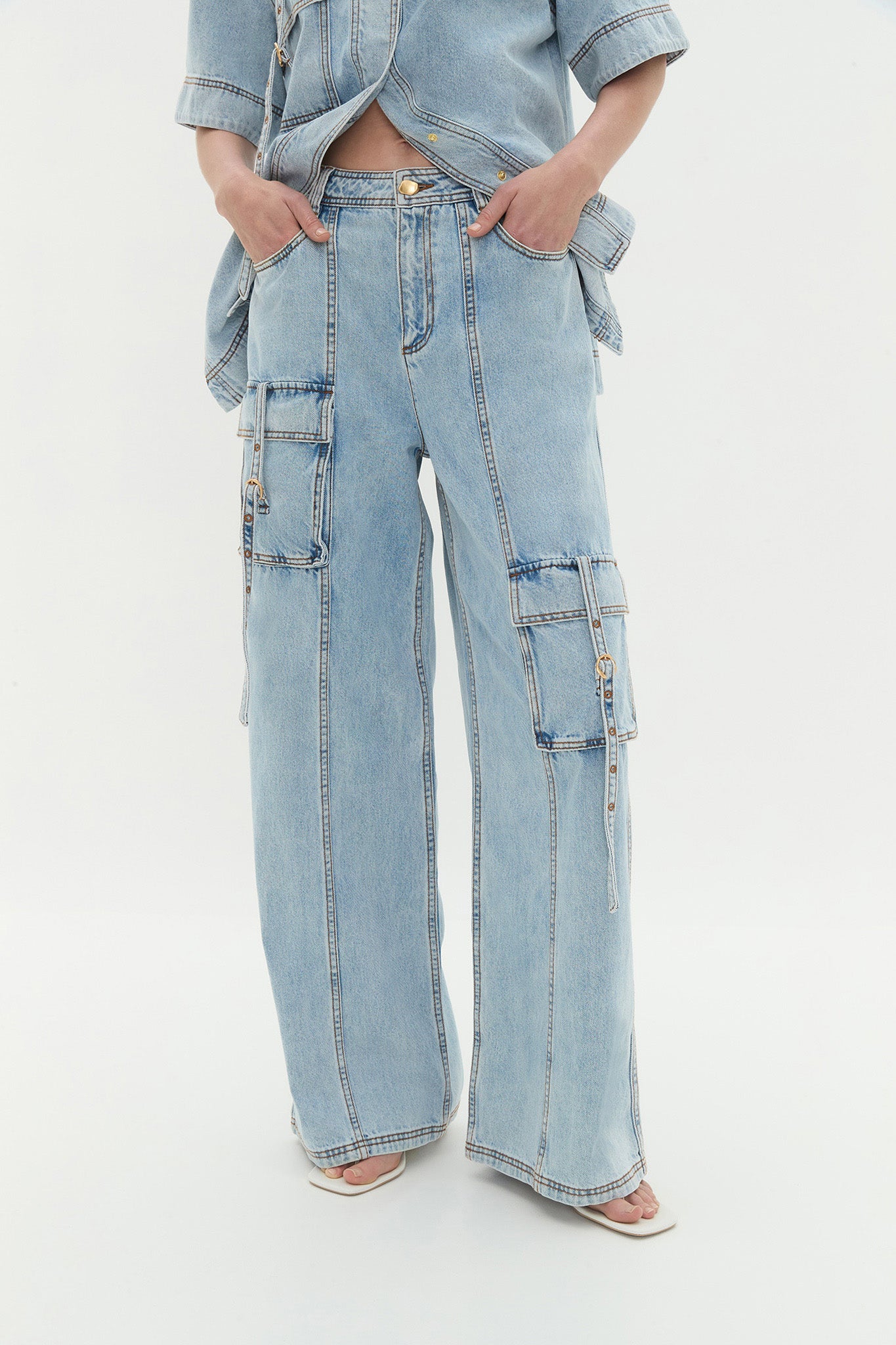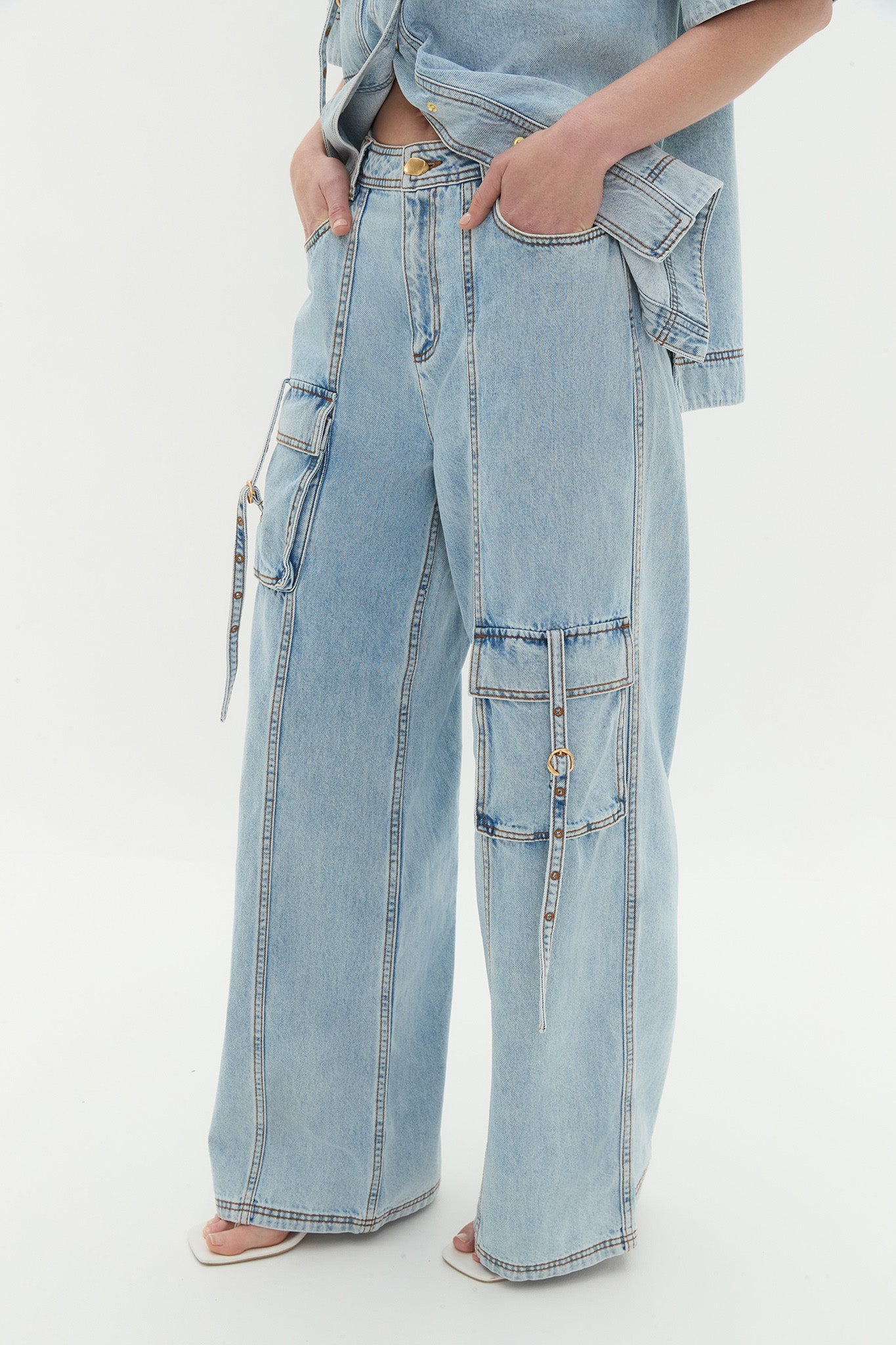 - Front cargo pockets with buckle detail