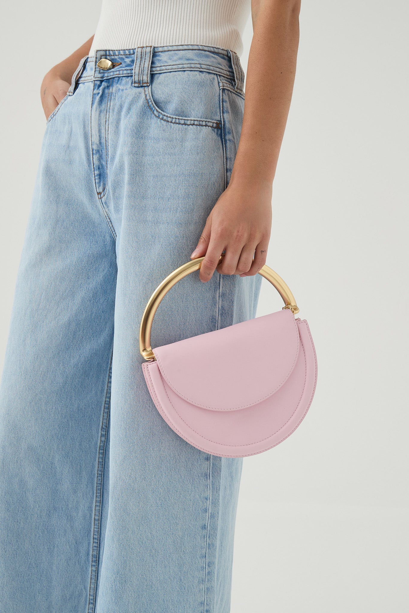 - Gold crescent fold-up-or-down feature handle