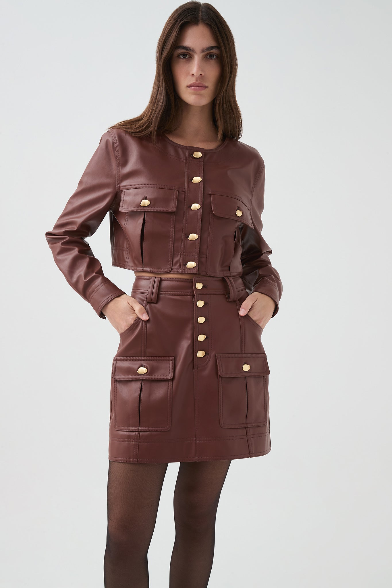 - Women’s vegan leather mini skirt