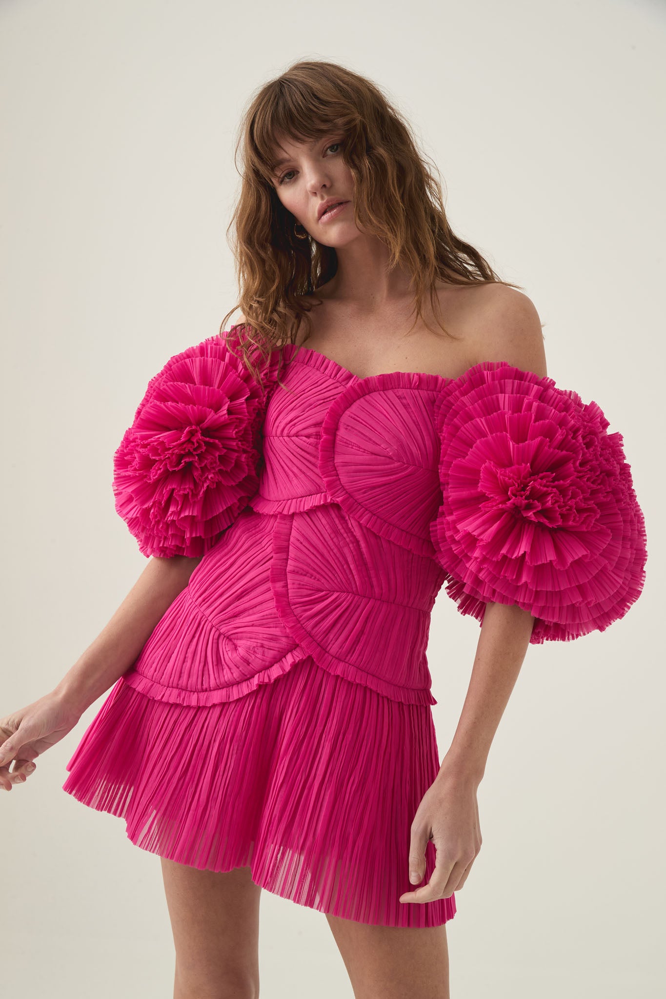 - Please note, the Crystallise Pleated Mini Dress is designed with a small fit. We recommend going up one size.