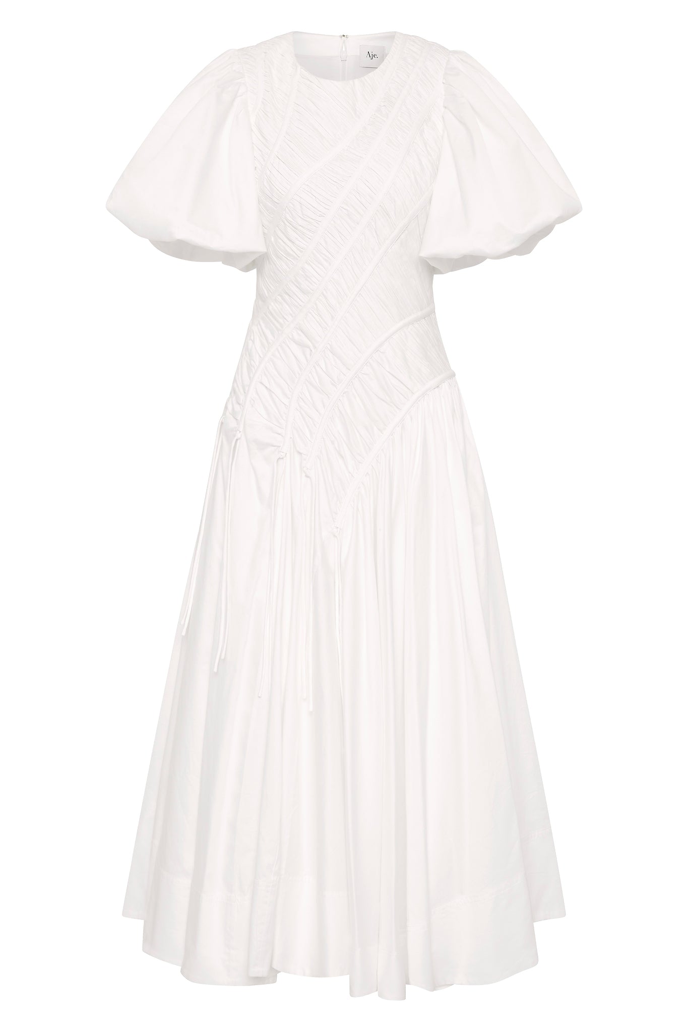 - Ruched bodice with curved drawcord detail